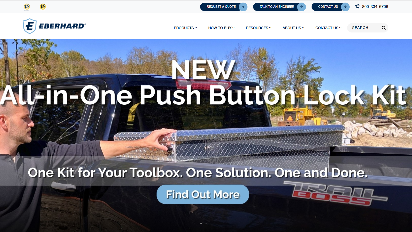 With roots dating to the 19th century in the USA, Eberhard focuses on vibration-resistant latches like the 8-240 Series Mini Rotary (750 lbs load capacity). Products integrate core removable locking with push-button mechanisms. Strengths: Compact designs for high-vibration environments and global supply chains. Weaknesses: Limited electronic options in base models. Applications: Truck caps and tonneaus. Reviews praise tamper-proof features, with a YouTube demo showing seamless integration.