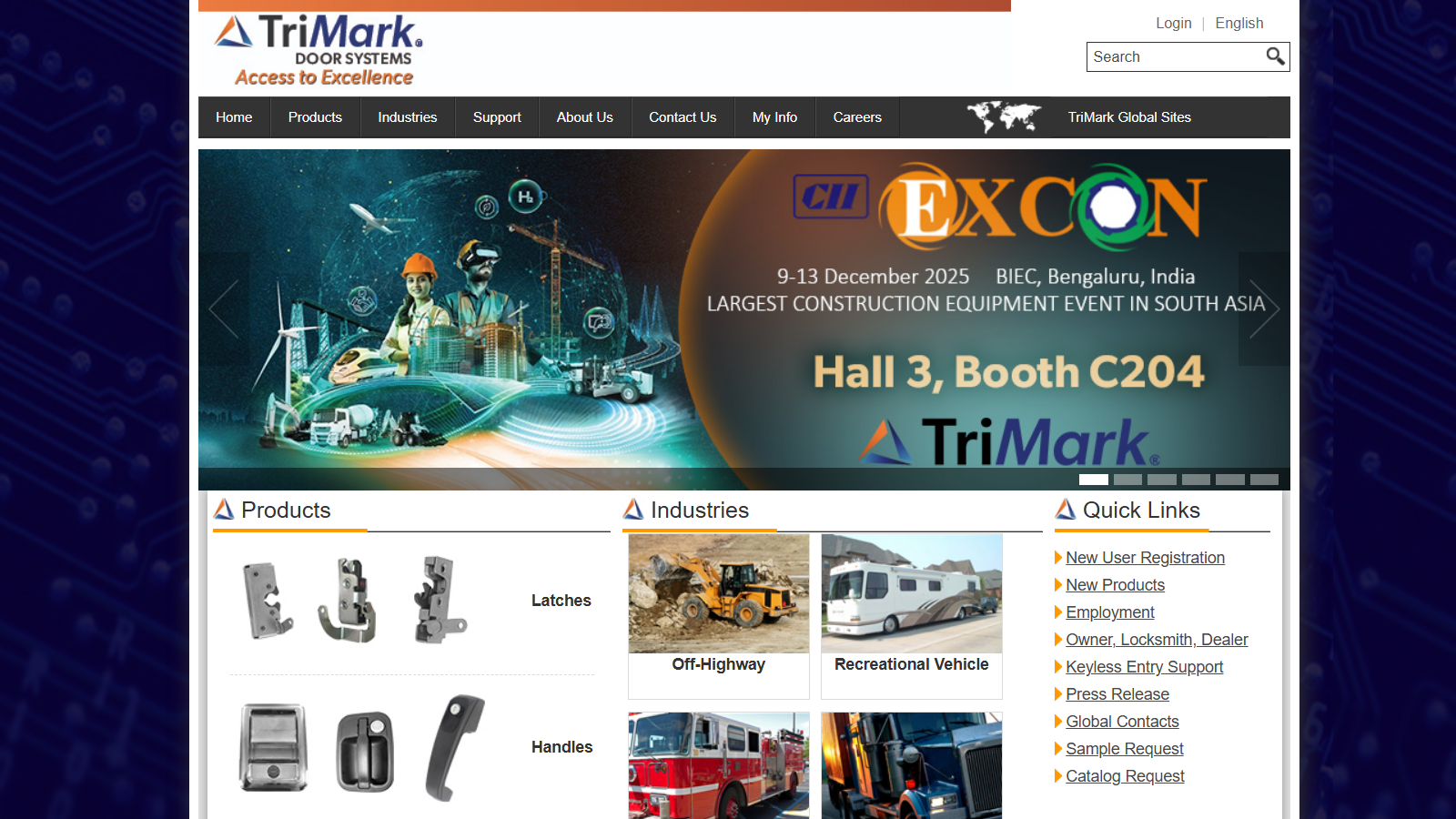Established in Iowa, USA, TriMark designs latches for agricultural and construction trucks, including 2-stage rotary models with striker bolts. They offer complete door systems with mechatronics for keyless entry. Strengths: Wide range of electronic and mechanical options; serves OEMs like John Deere. Weaknesses: Higher complexity may require professional installation. Applications: Heavy-duty vehicles and RVs. Forum discussions on Reddit emphasize reliability in off-highway use.